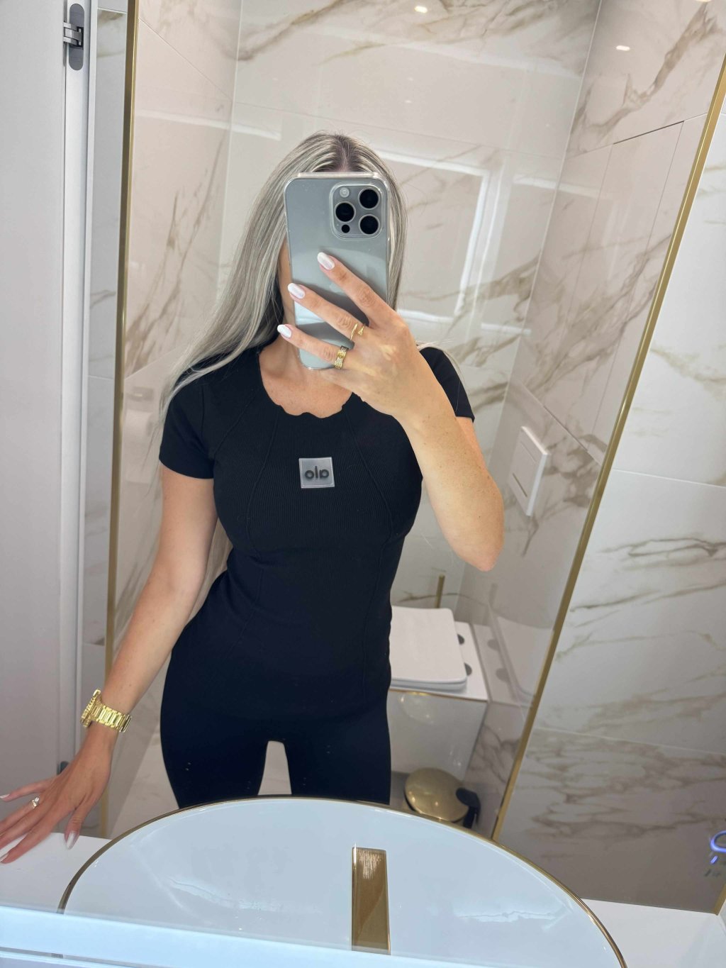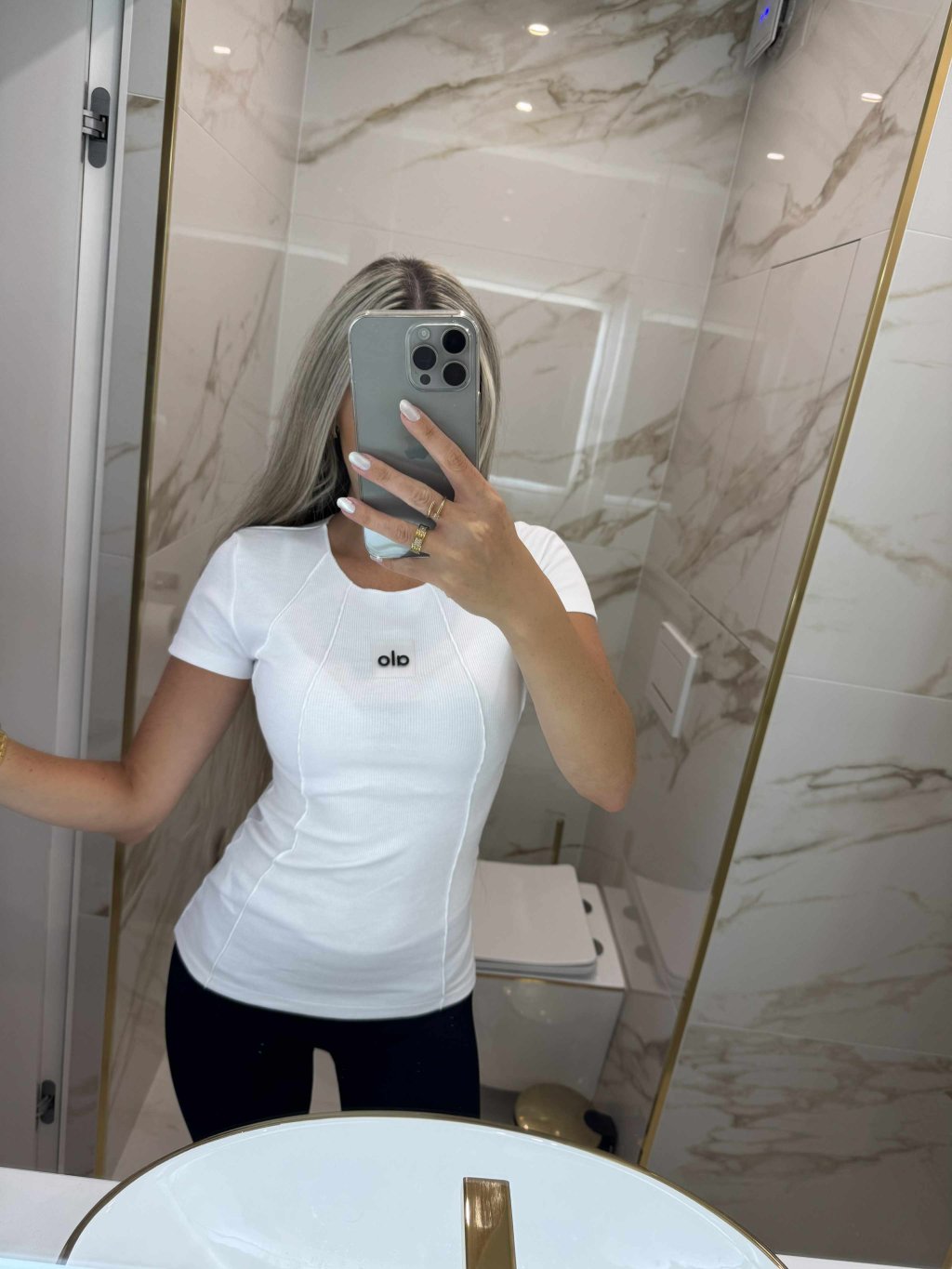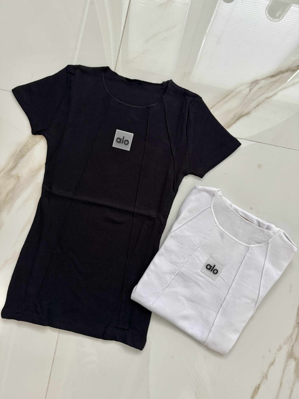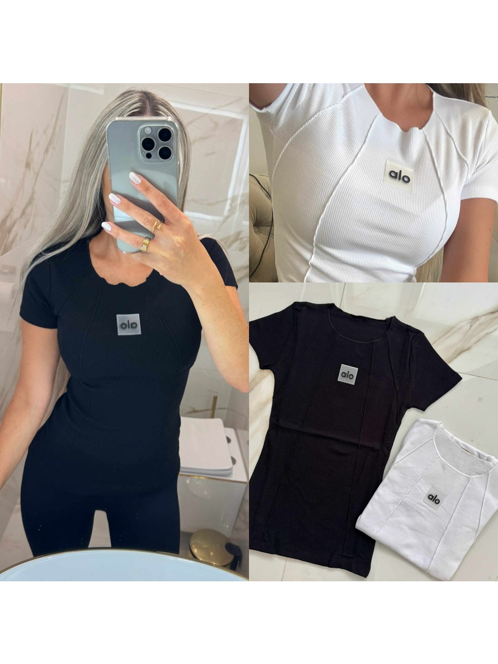 Elastické vrúbkované tričko s nápisom ALO. Velkosť UNI - sedí na XS S M