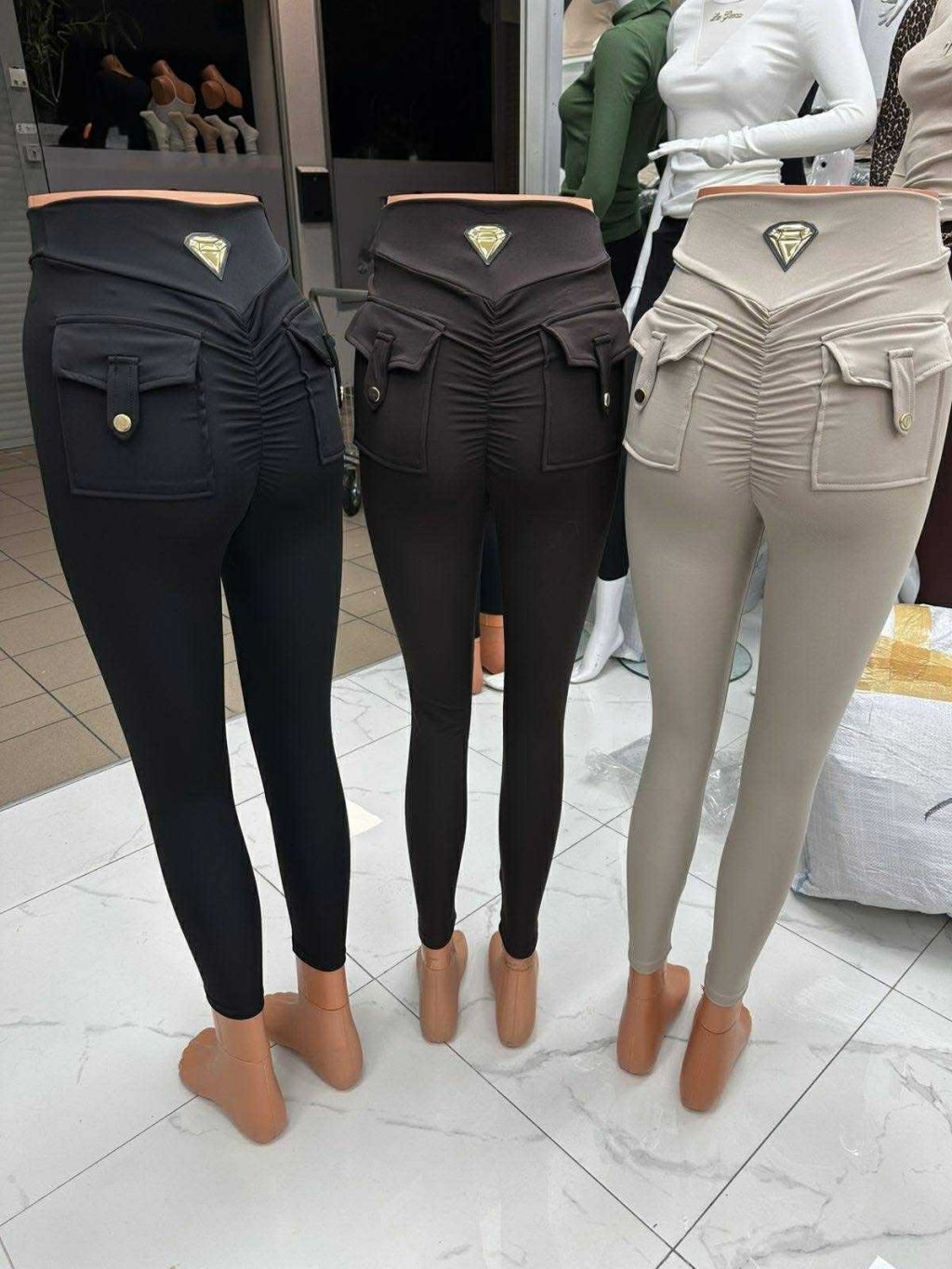 PUSH-UP legíny - vďaka vreckám a riaseniu vytvárajú DOUBLE push-up efekt. Zdobnené nášivkou v tvare diamantu. Sú z elastického materiálu a majú vysoký pás. LIMITKA, kapučínové sedia klasicky podľa velkosti, béžové a čierne sú strihovo užšie.