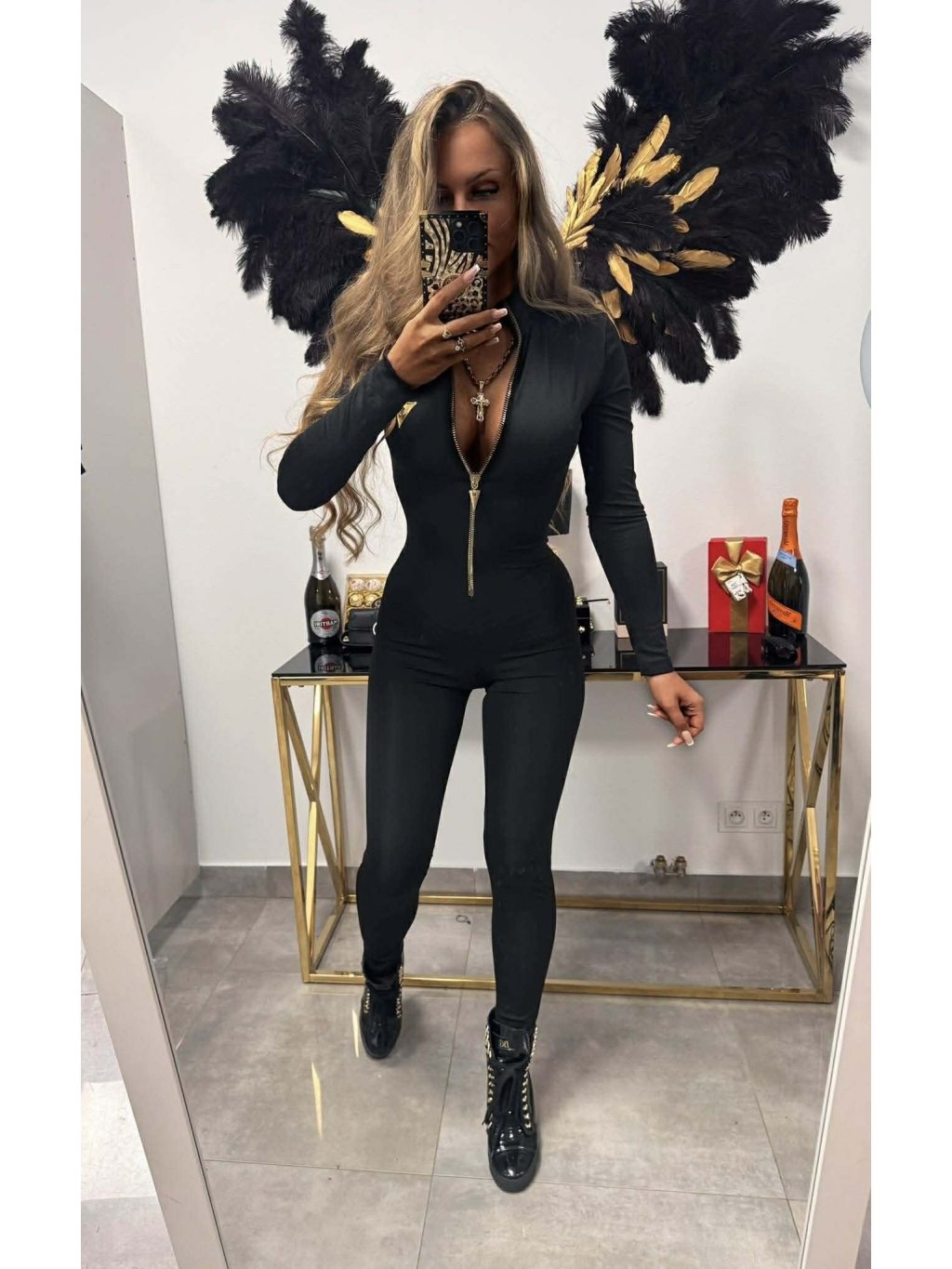 Hladký overal so zlatým zipsom