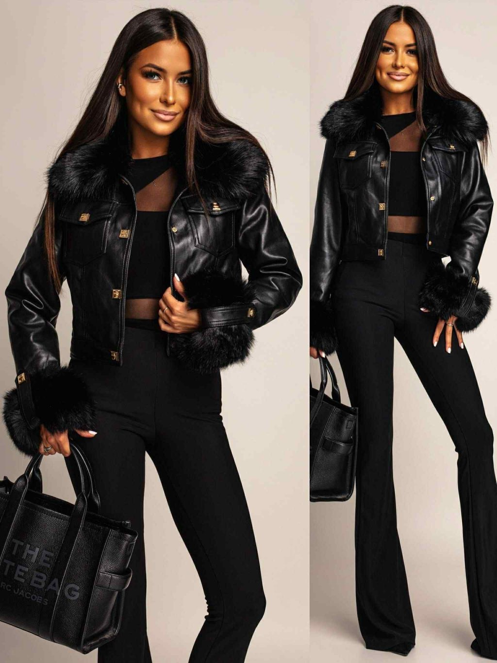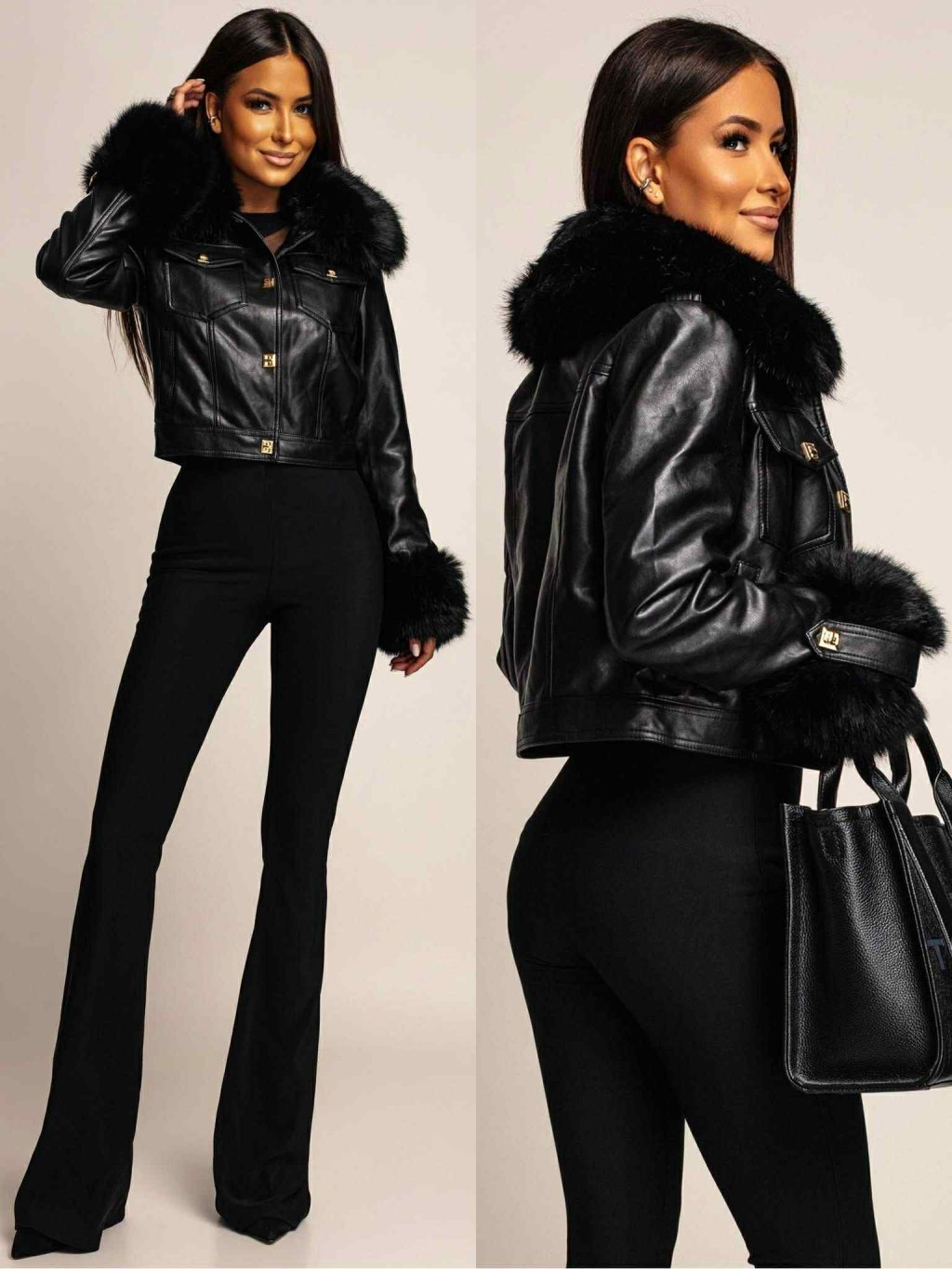 Zateplena oženková bunda s kožušinkou zdobená zlatými aplikáciami. Velkosti S M L. Zvnutra je zateplena kožušinkou, kožušina z rukavov aj z goliera sa dá odopnúť.