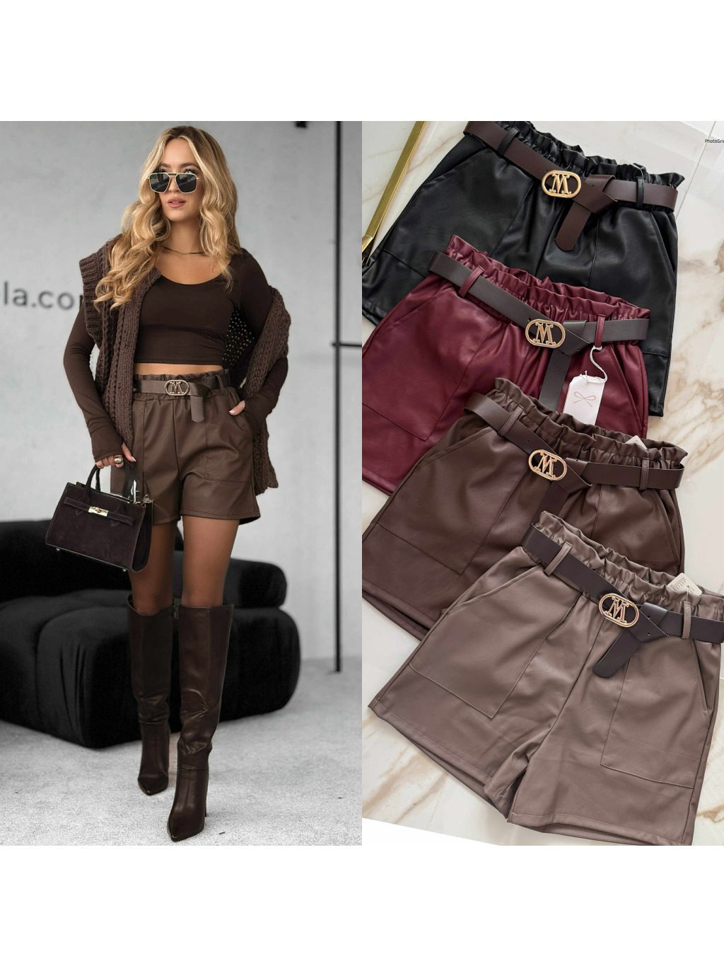 Koženkové kraťasy s opaskom M