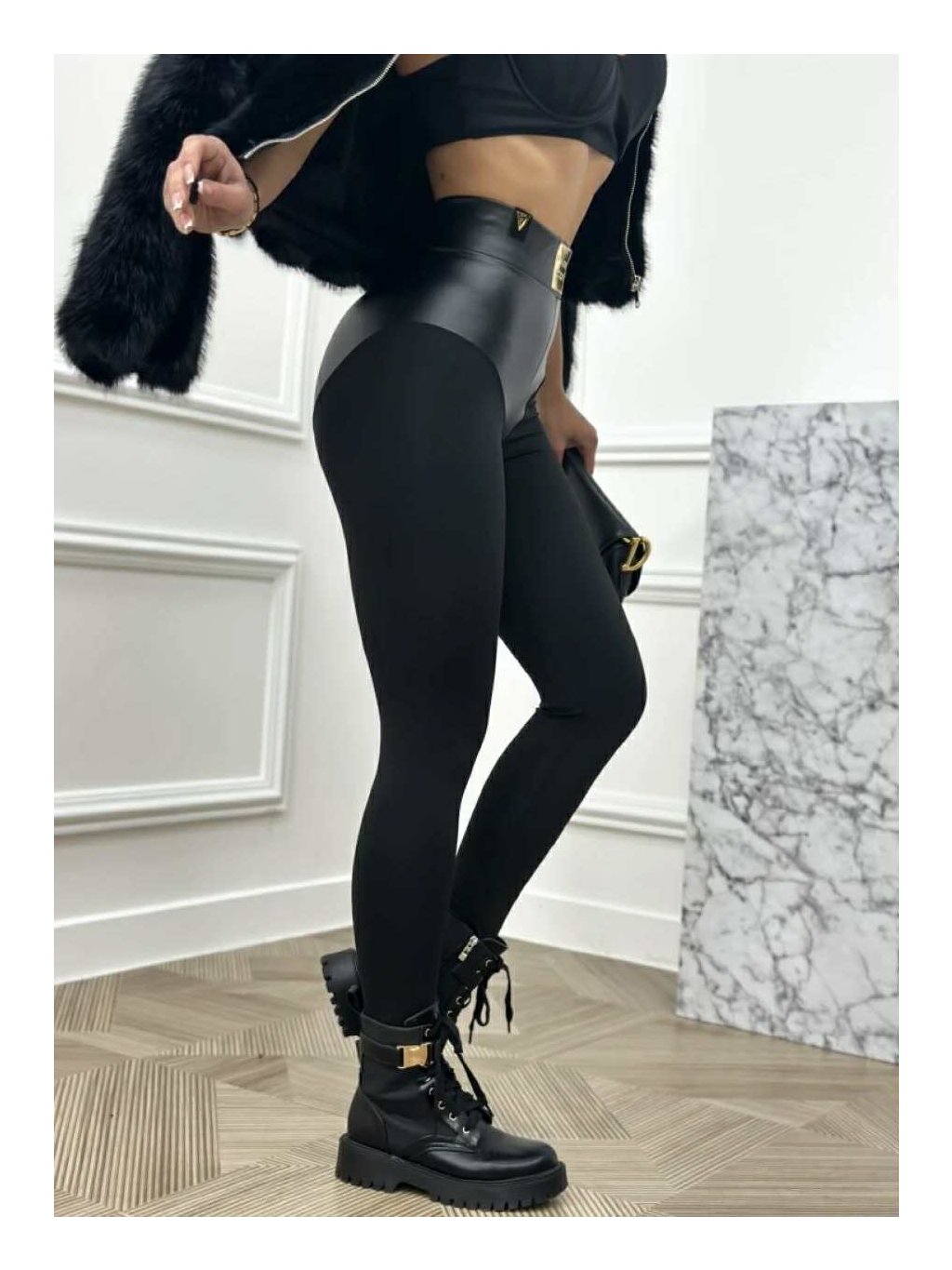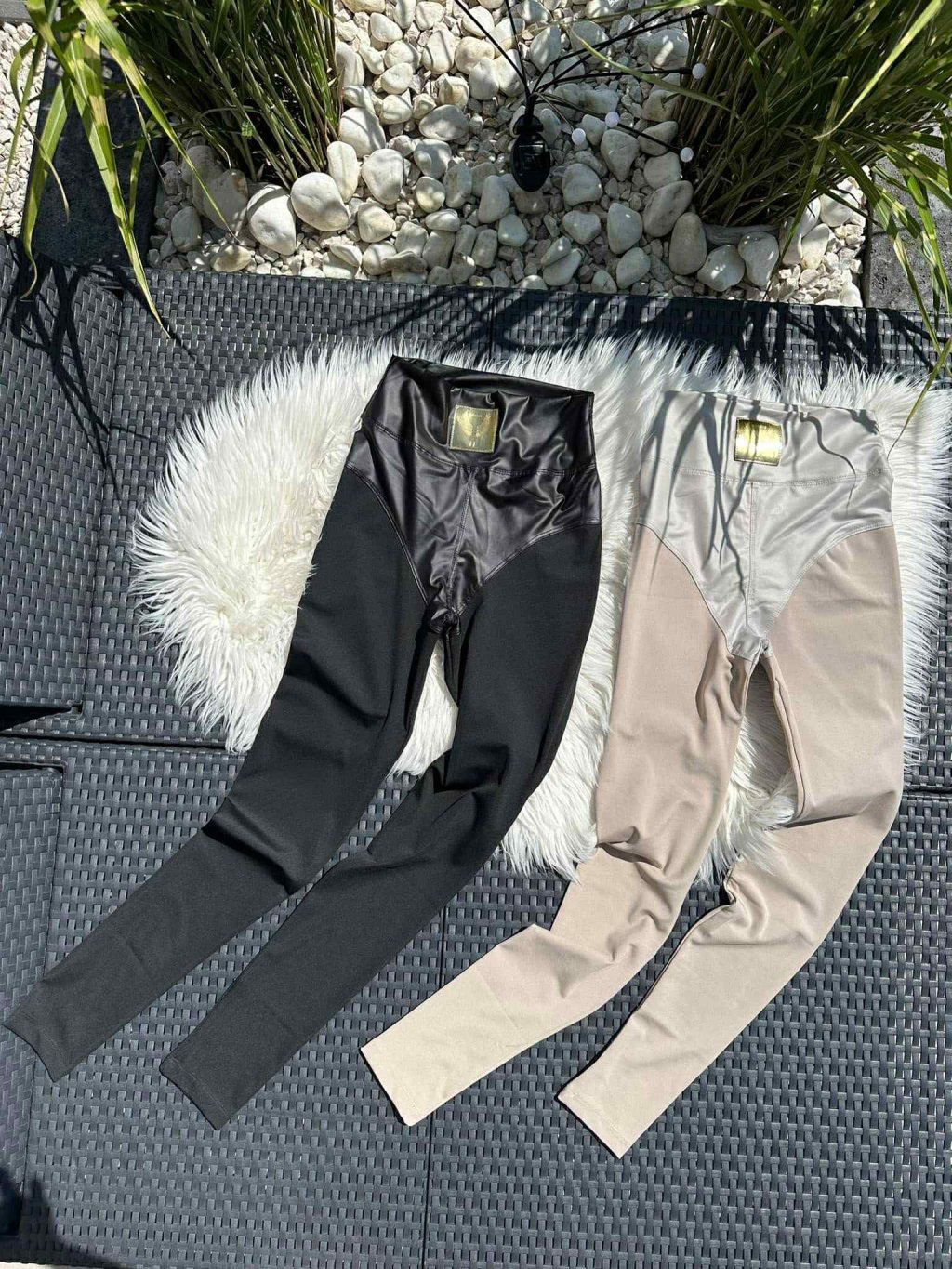 Legíny kombinované s koženkovým materiálom, sú elastické a sťahujúce s vysokým pásom. Velkosti sedia klasicky, no velkosť S sadne aj na XS.