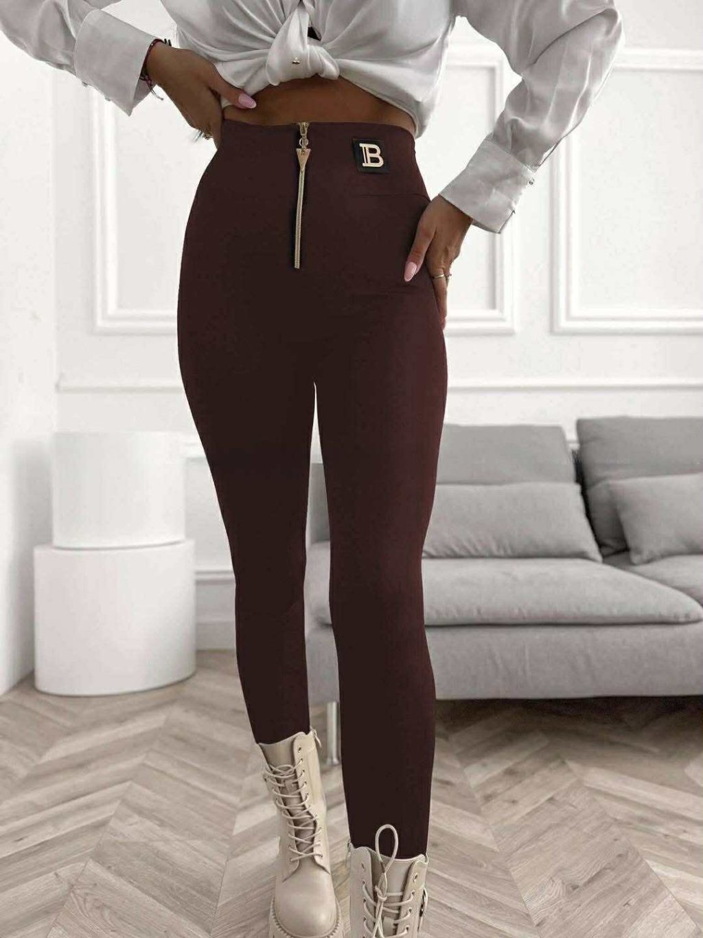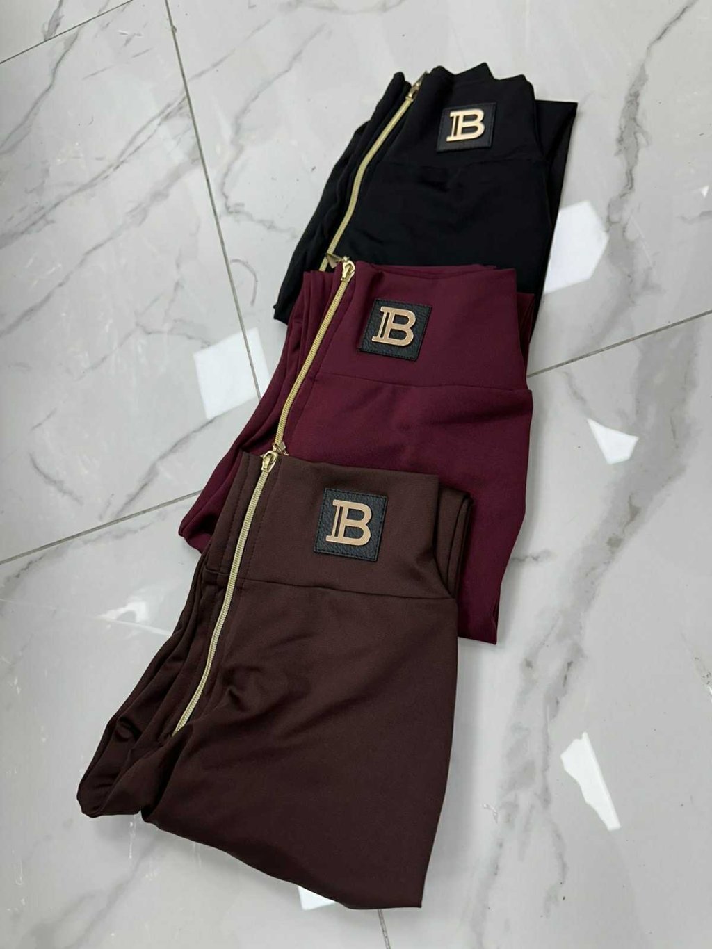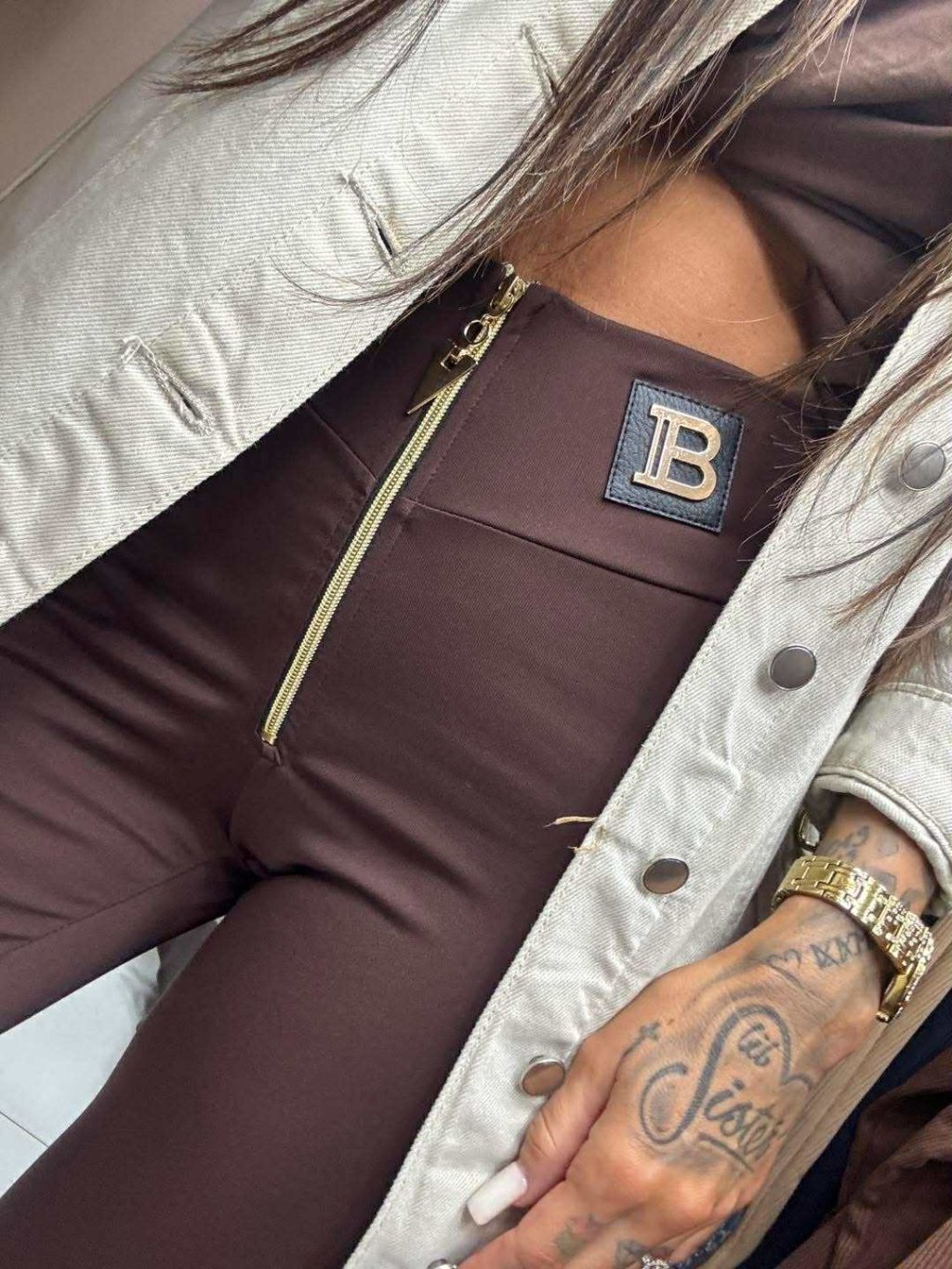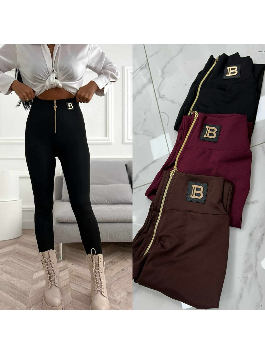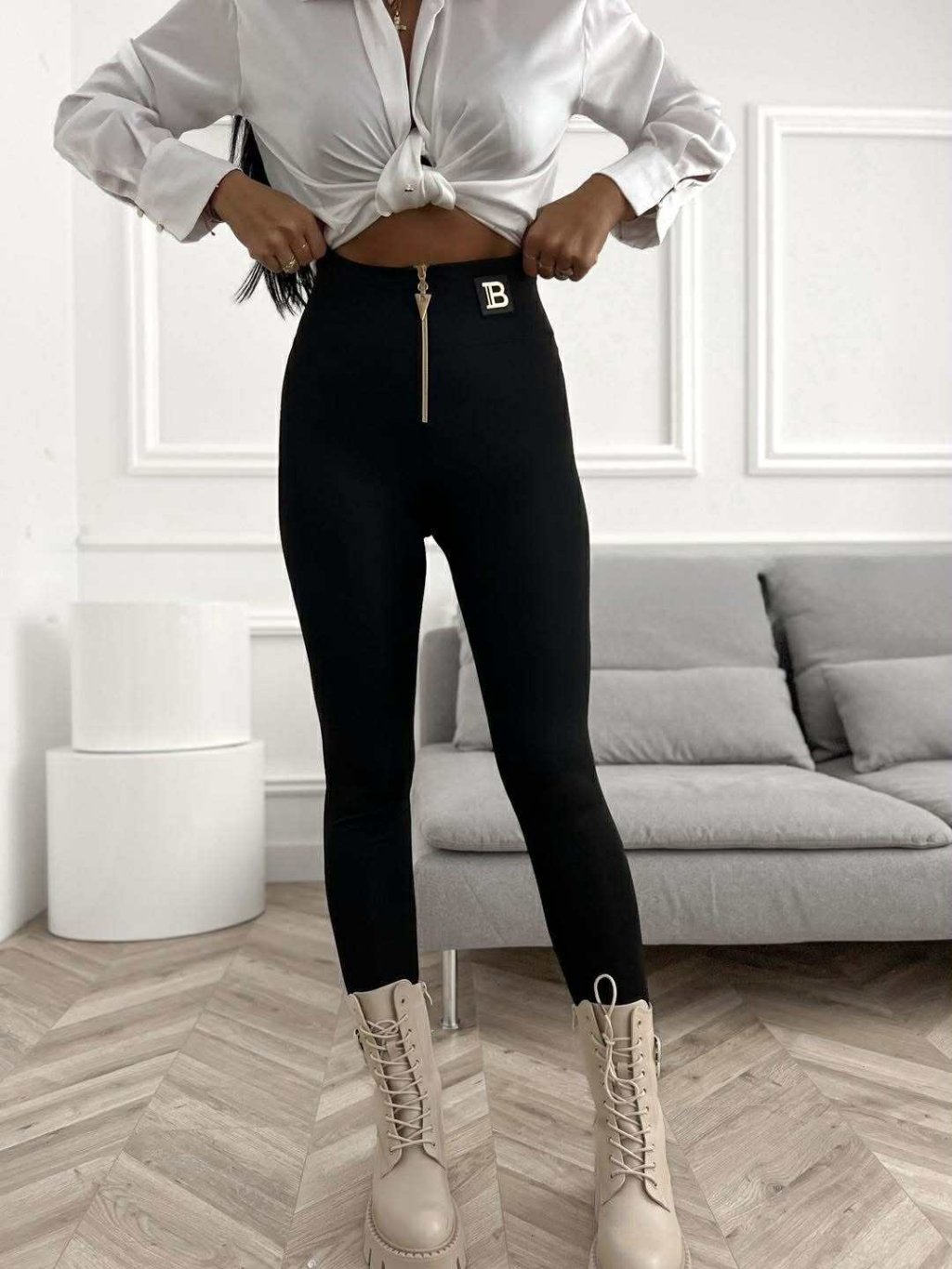Elastické luxusné mierne sťahujúce legíny so zlatým zipsom a nášivkou B. Výborne sedia na postave. Zo zadu sú nariasené, takže vytvárajú PUSH-UP efekt.