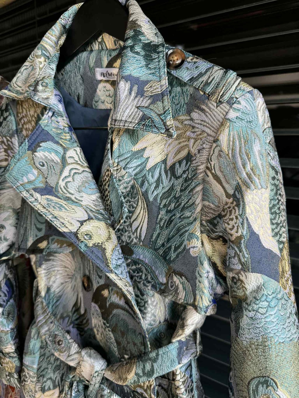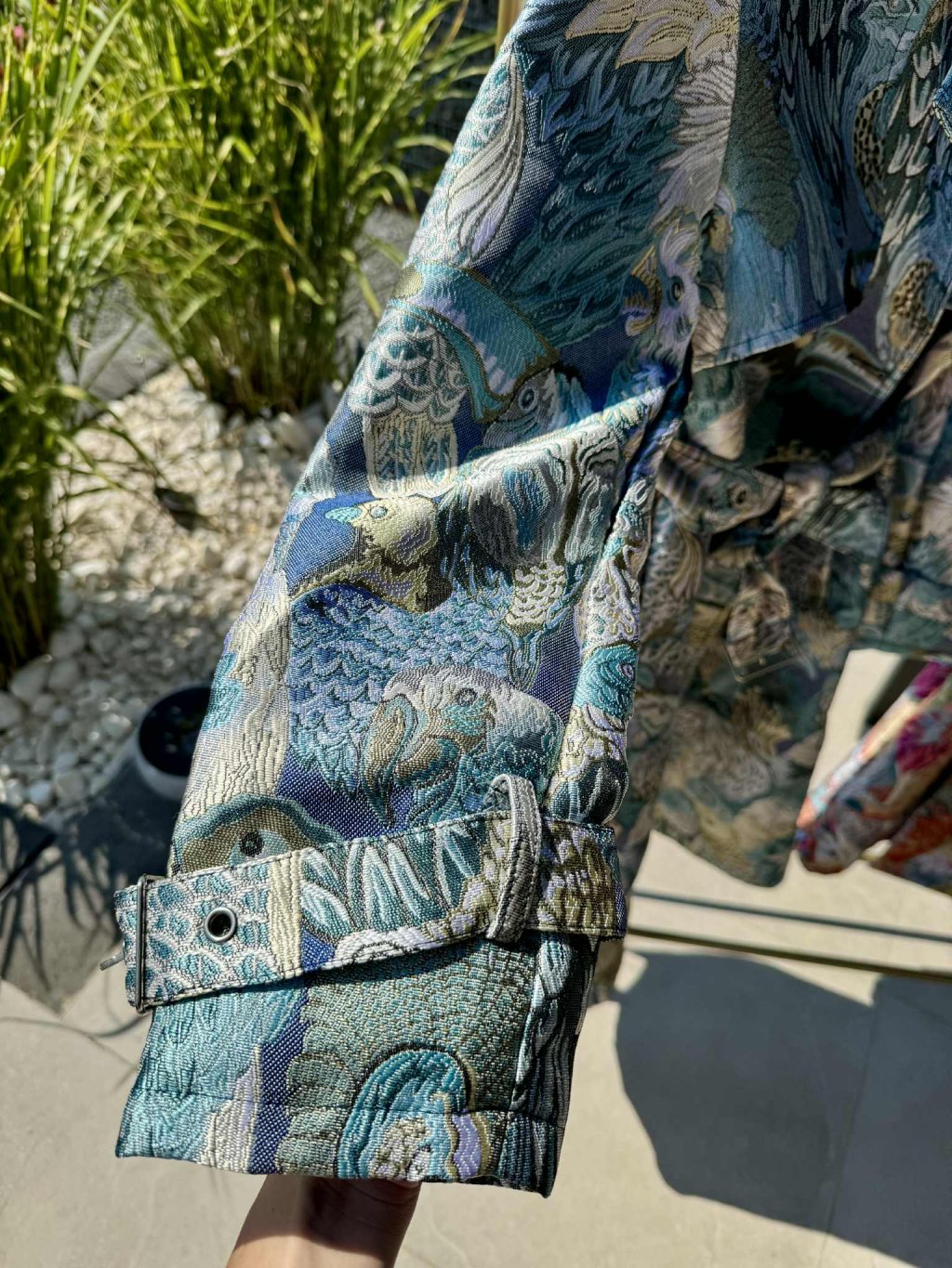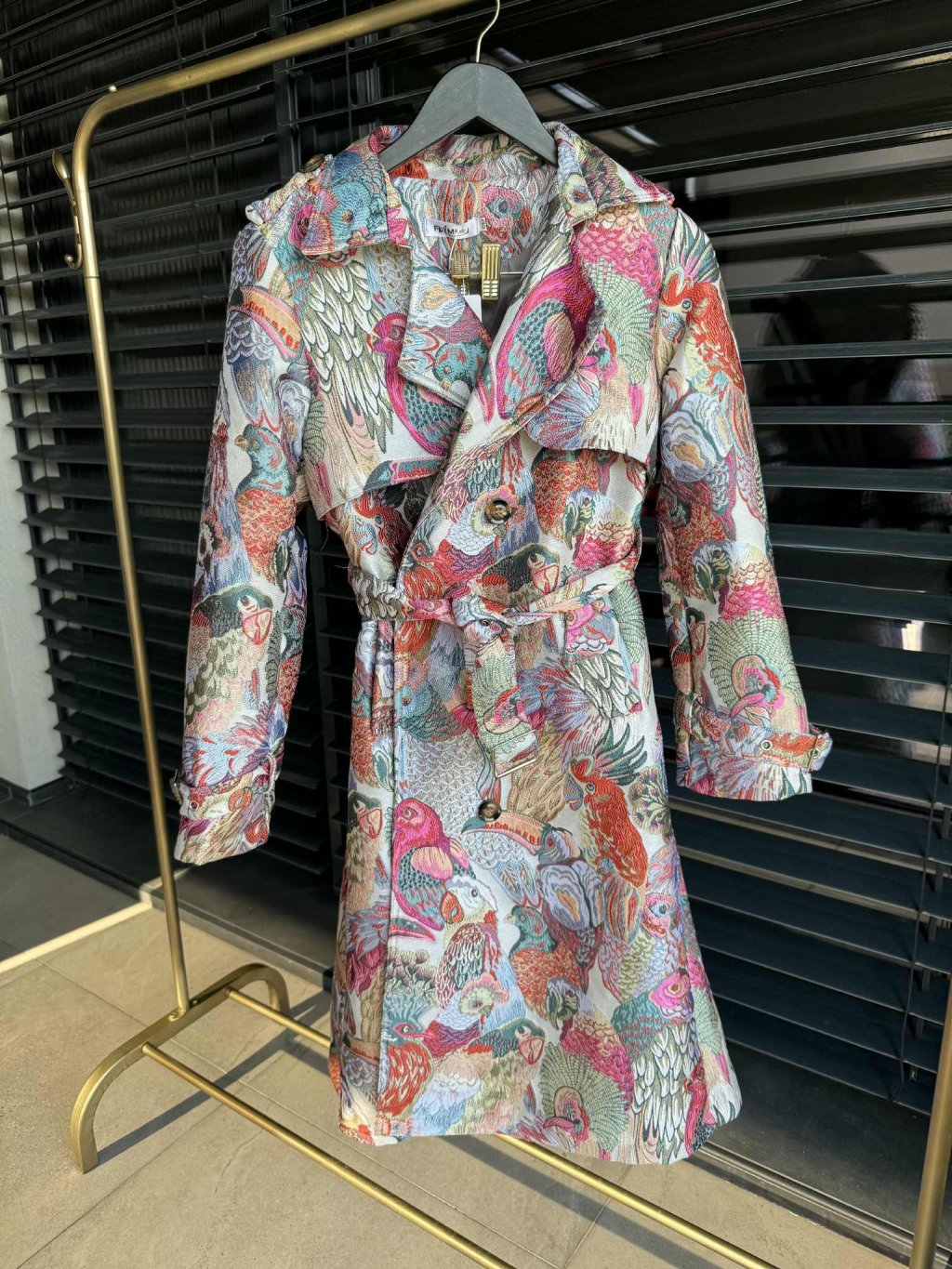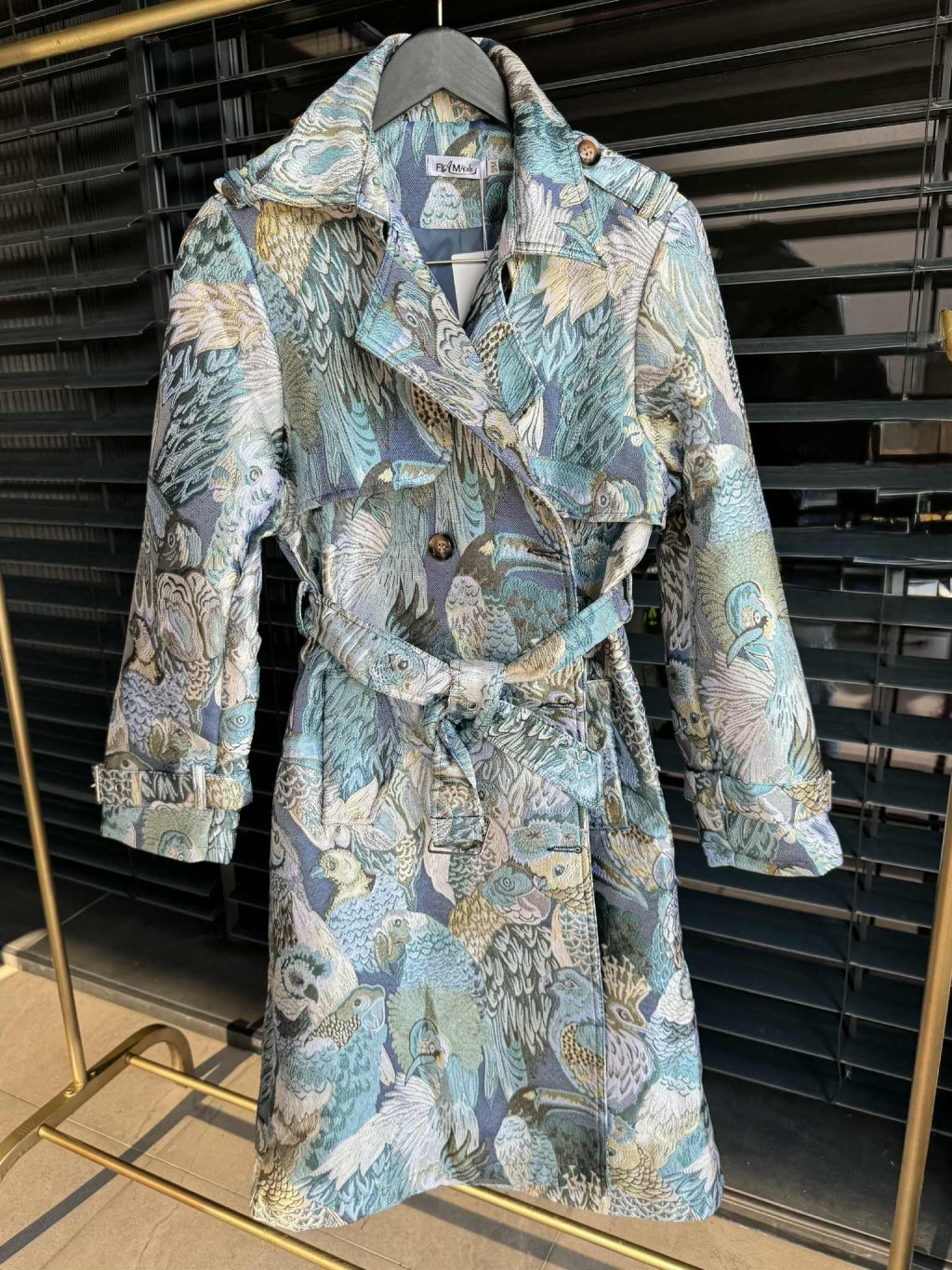 Luxusný štruktúrovaný trenčkot kabát v krásnych 2 farbách. Kabát je v prémiovej kvalite, ma opasok a 2 bočné vrecká, zapínanie na gombíky, tkaný vzor.