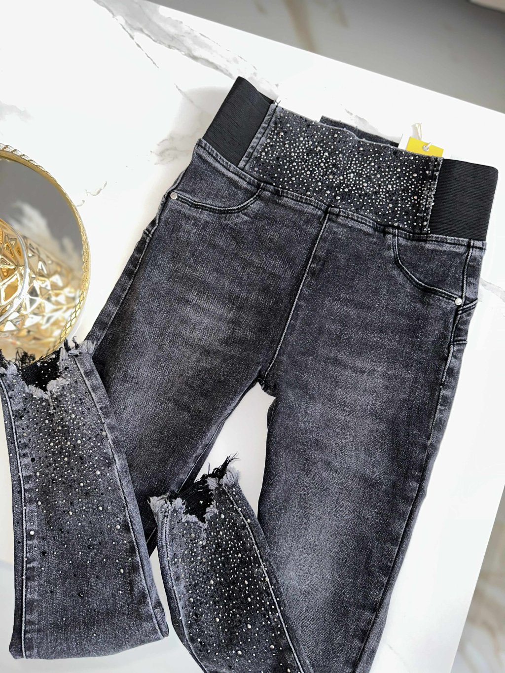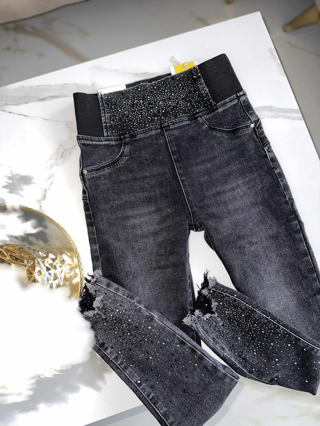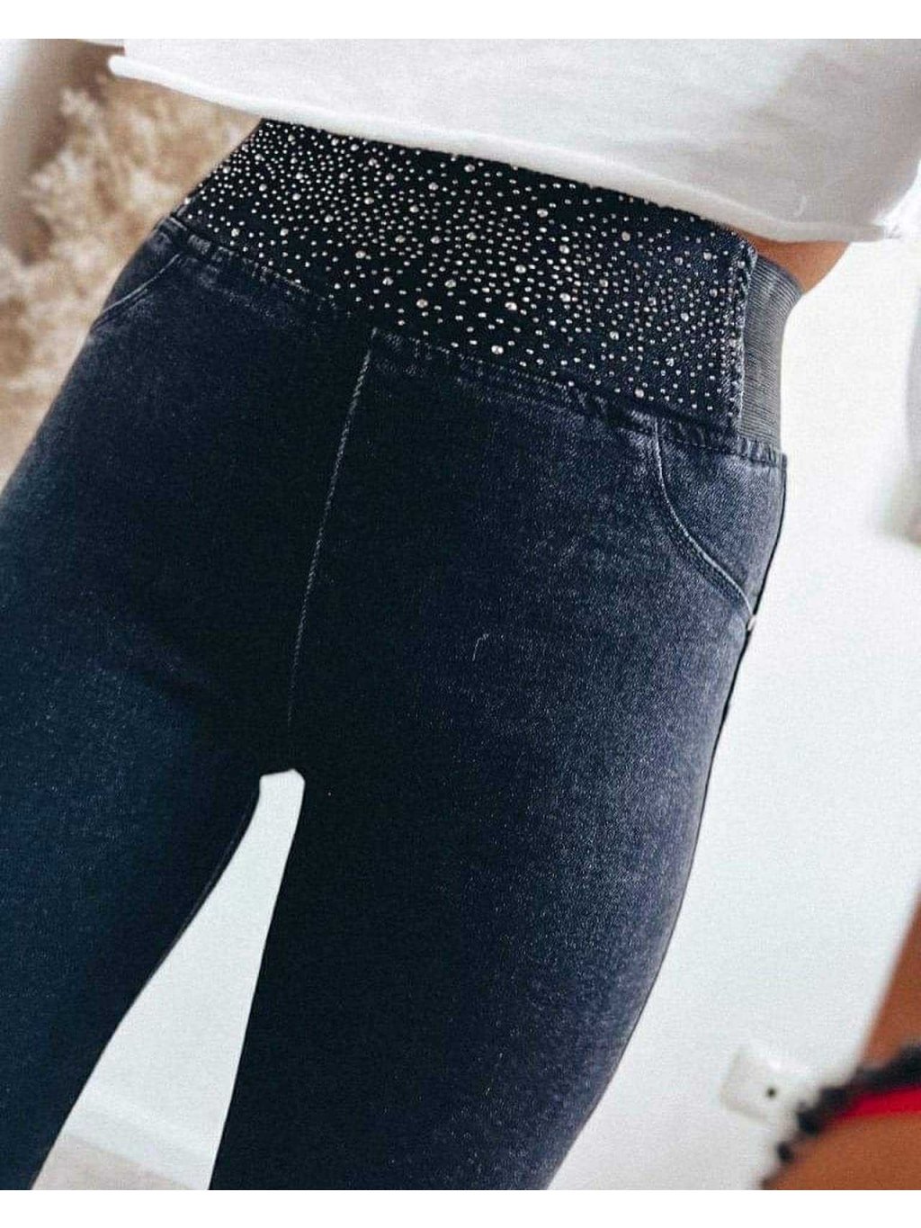 Rifle v páse na gumu s kryštálikmi