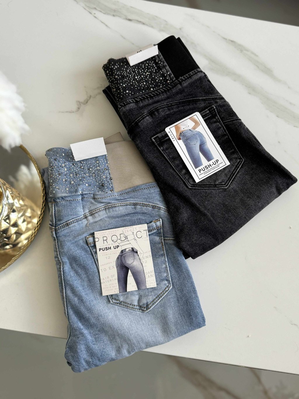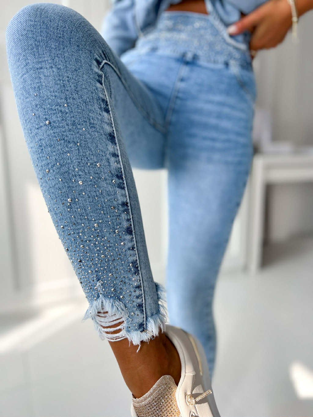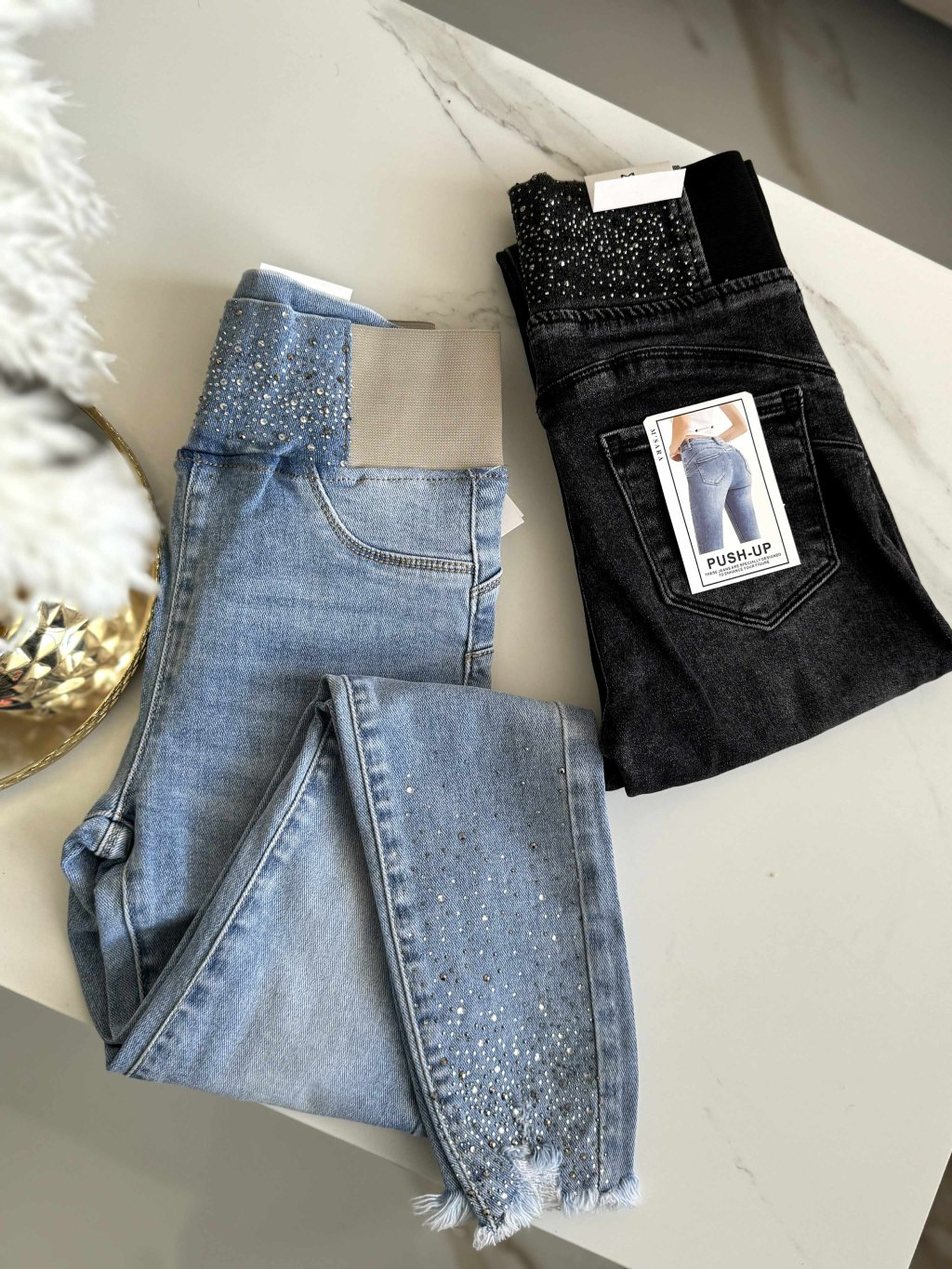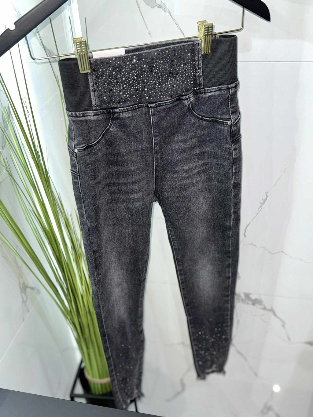 Rifle v páse na gumu s kryštálikmi