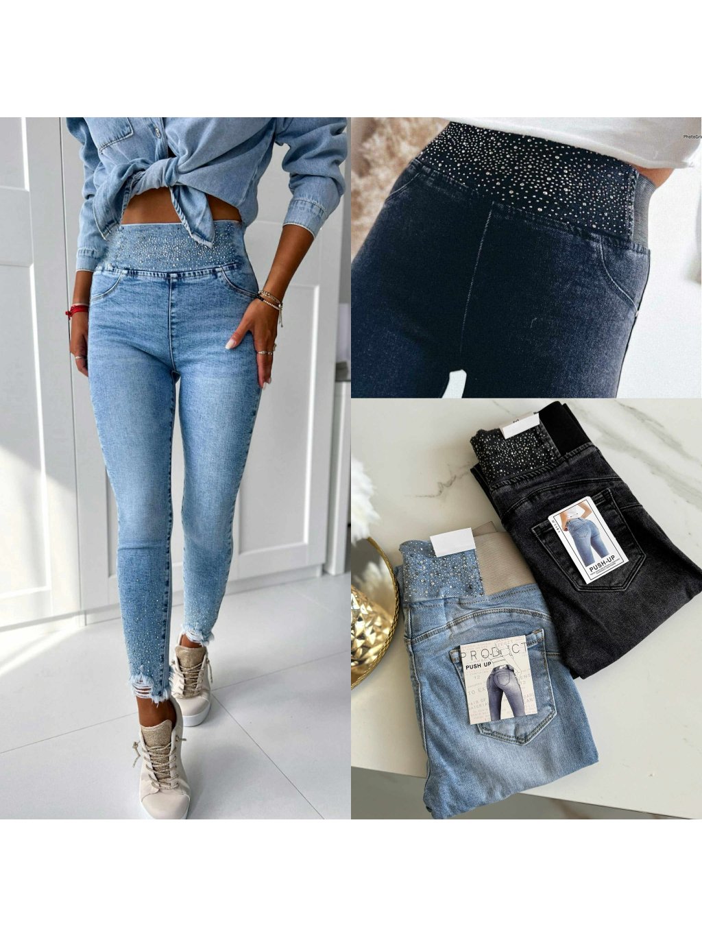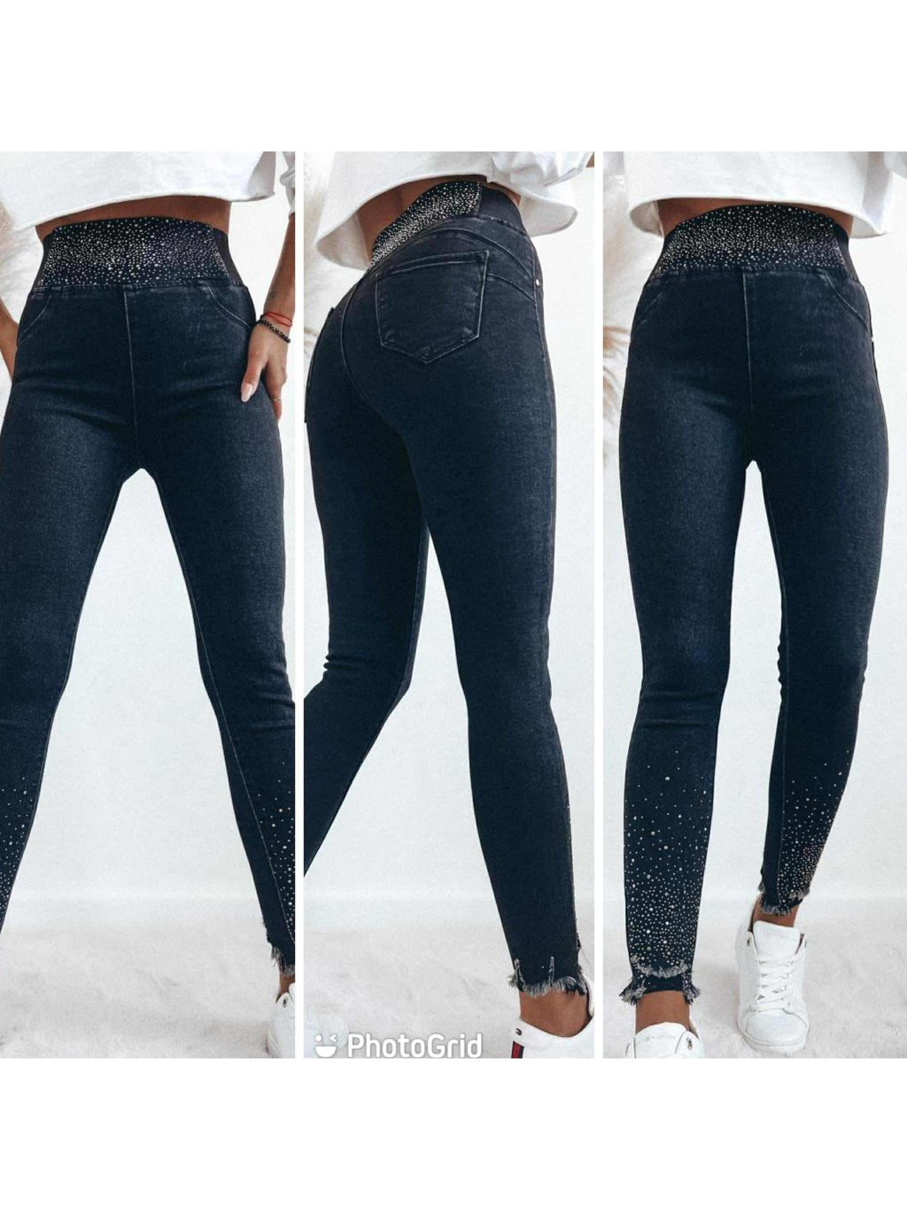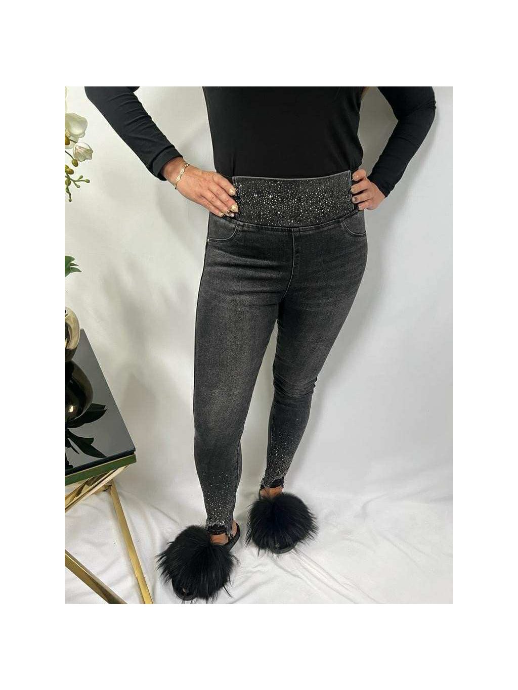 Elastické rifle v páse na gumu, majú vysoký pás, elastická stredne hrubá riflovina. Velkosti sedia klasicky.