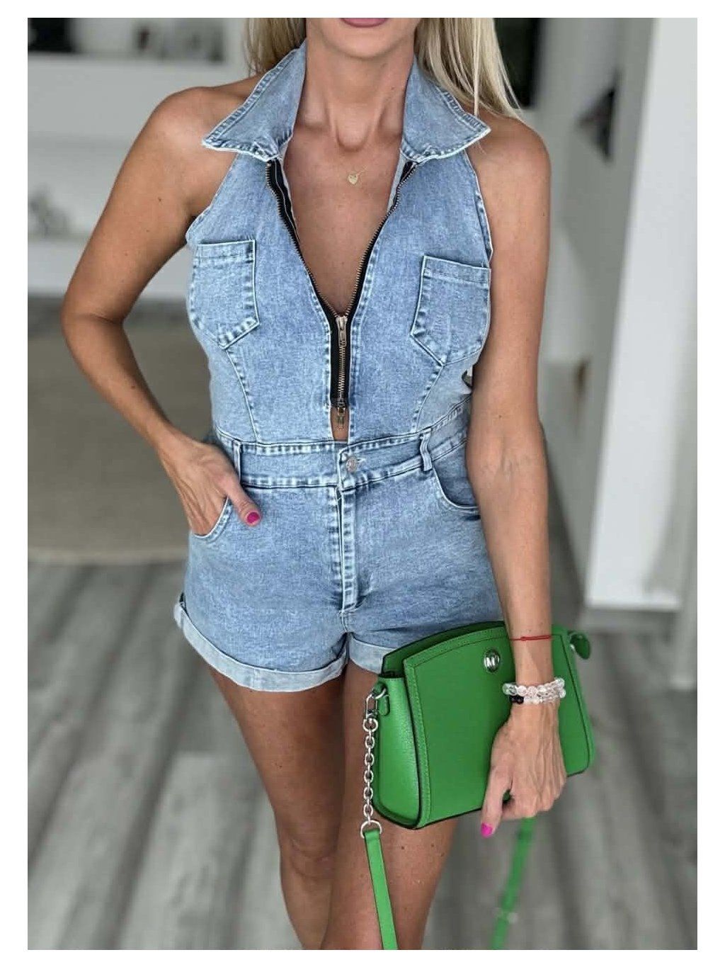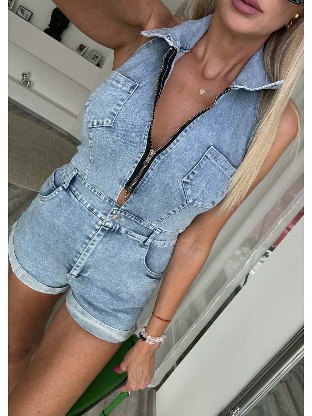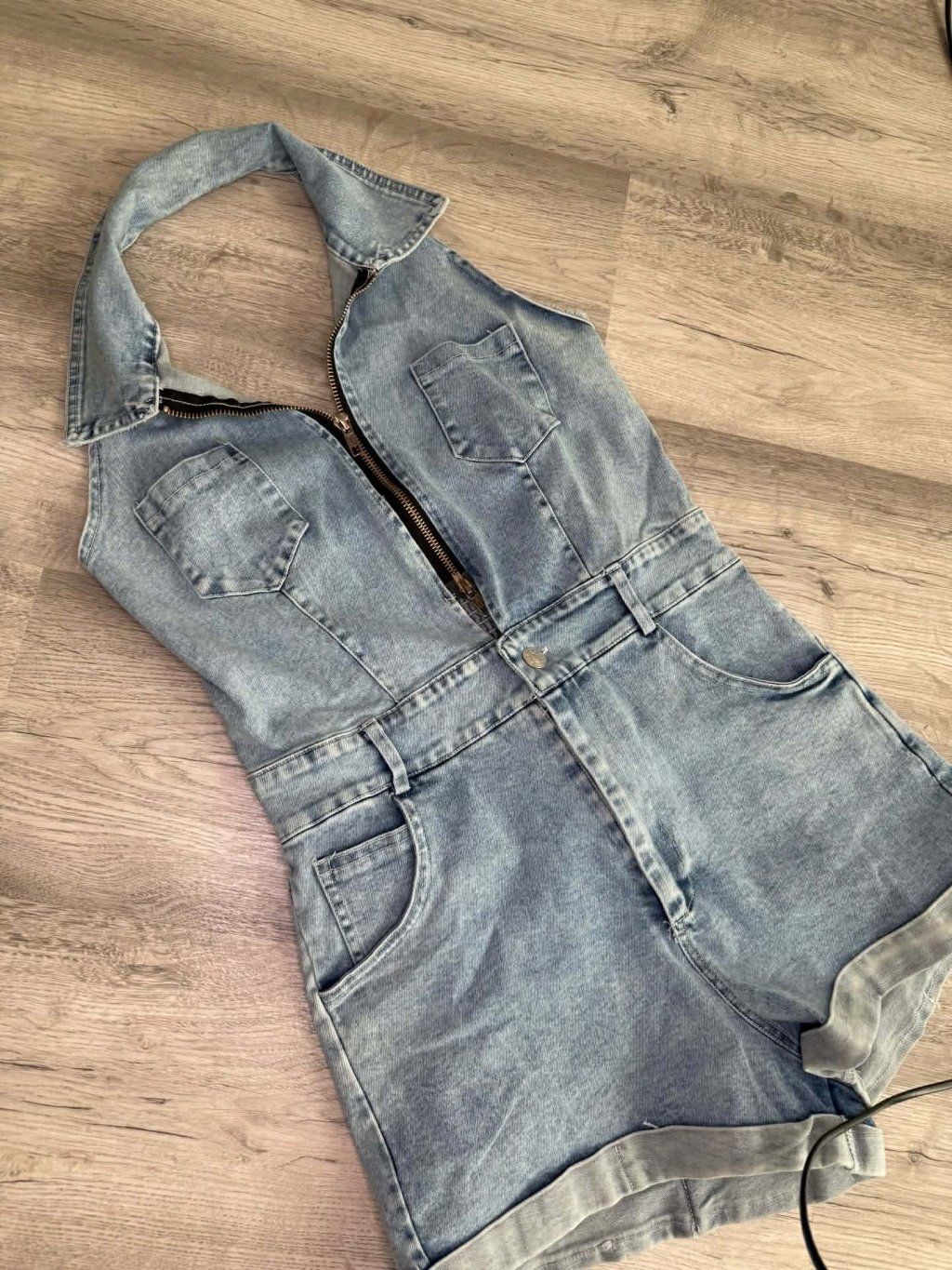 Elastický riflový kraťasový overal dostupný v dvojčíslach S/M - sedí na XS/S a M/L sedí na S a M.