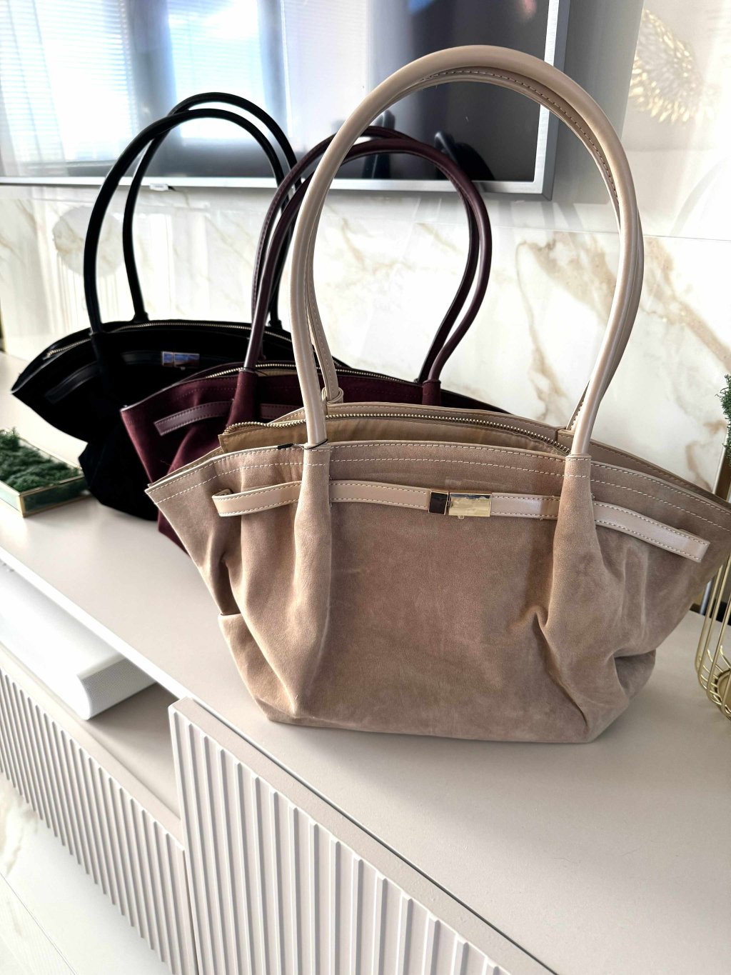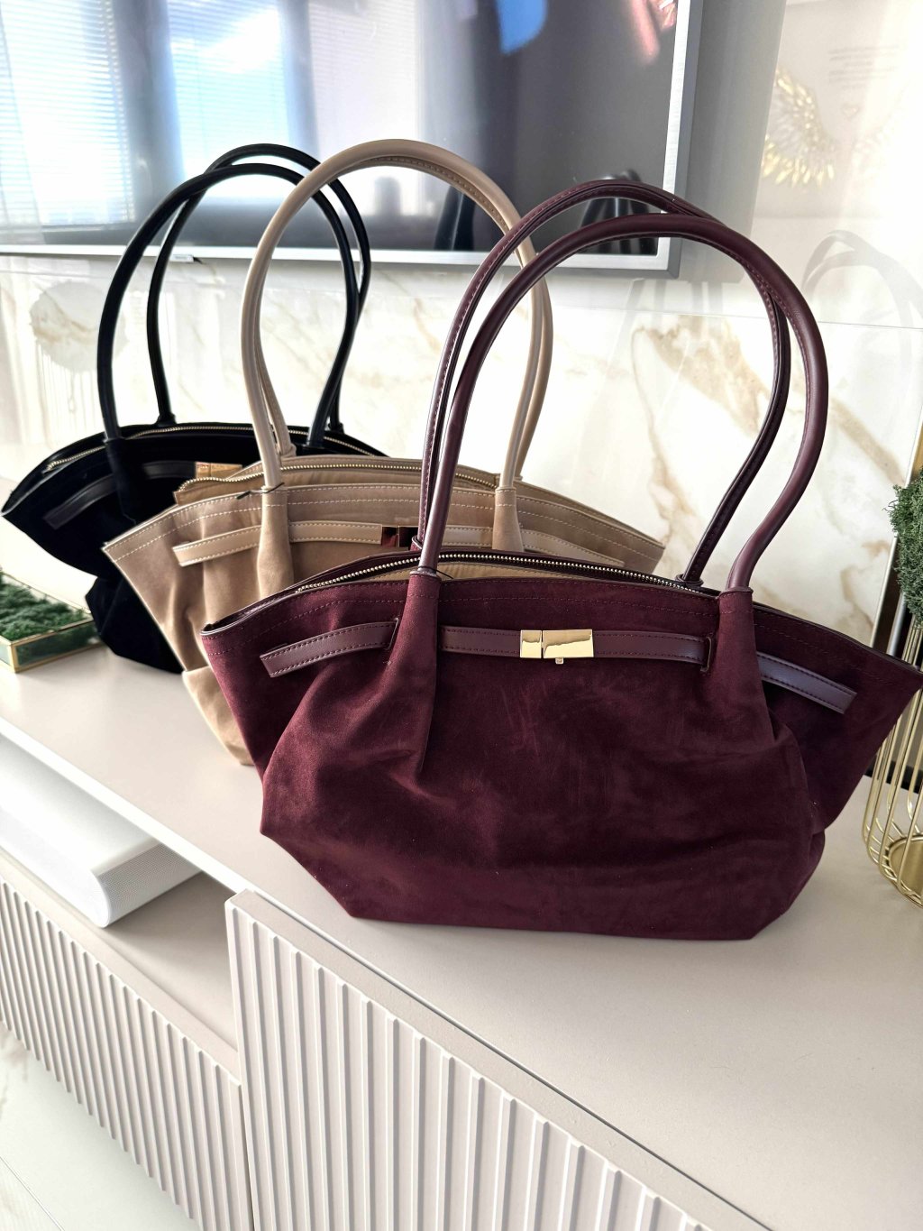 Veľká dámska kabelka na rameno zo semišového materiálu je skutočný hit tejto sezóny jeseň–zima. Je vystužená a krásne drží tvar.