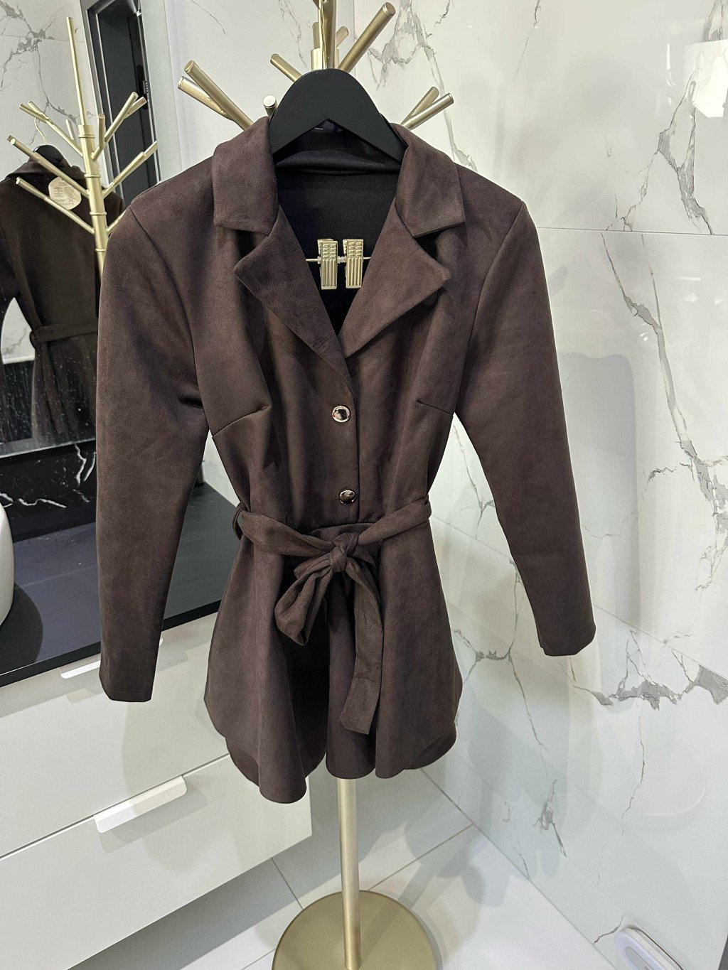 Overálove semišové šaty v čokoládovo hnedej farbe. Velkosť UNI - sedia na XS S M menšie L.