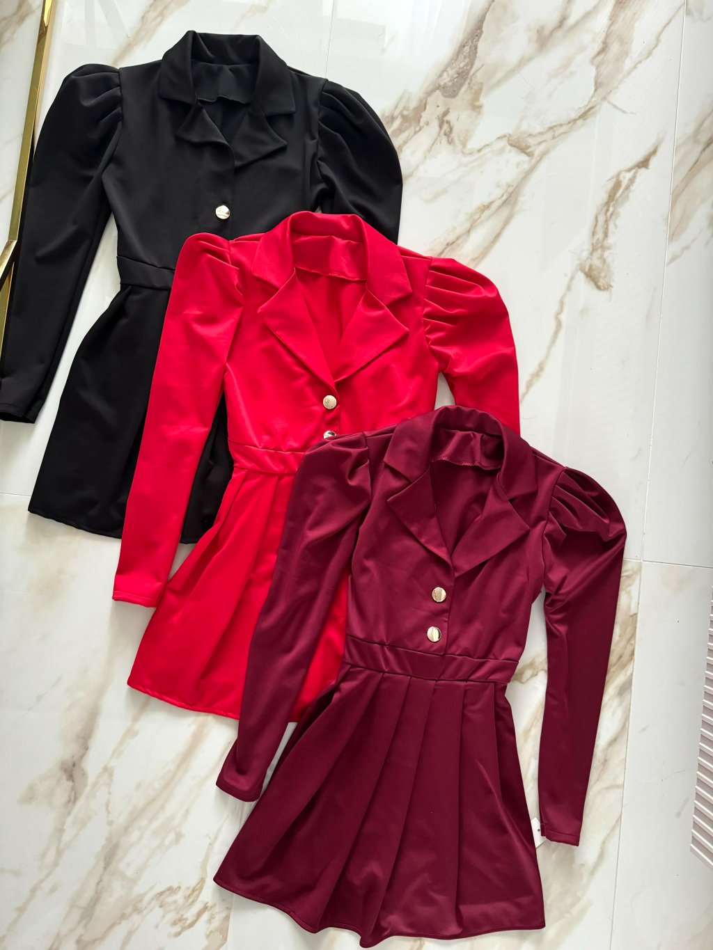 Elegantný sukňokraťasový overal. Velkosť UNI - sedí na XS S M. Zlaté gombíky
