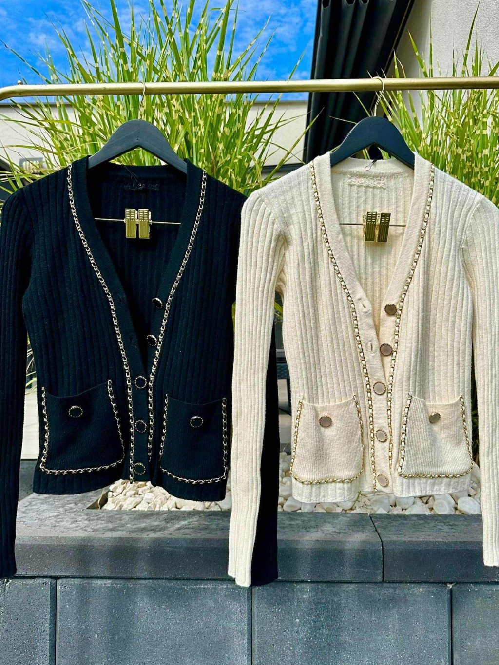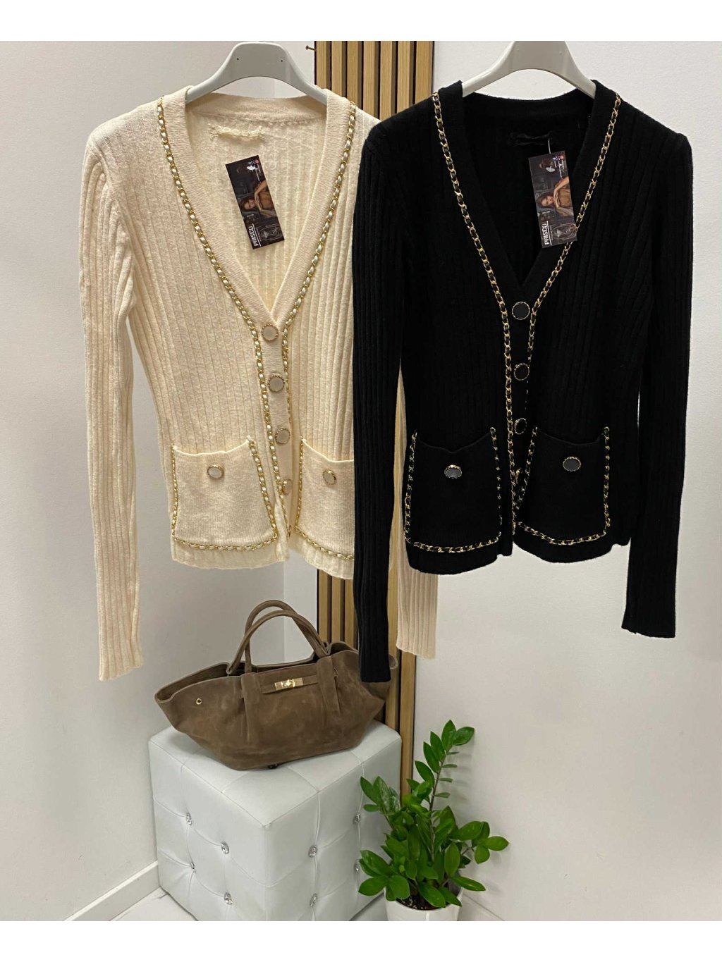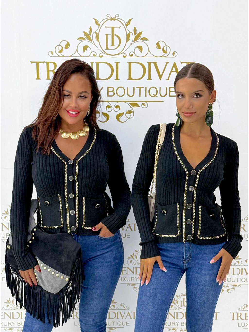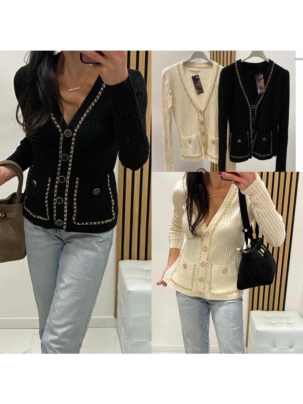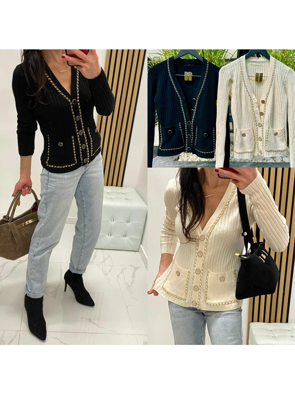 Úpletový svetrík so zlatými detailami, veľmi príjemný elastický materiál. Velkosť UNI - sedí na XS S M.
