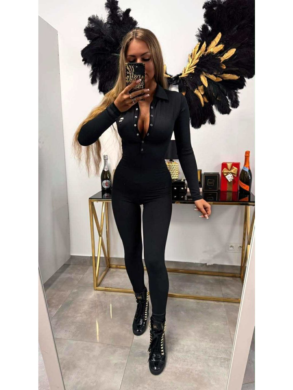 Vrúbkovaný elastický mierne sťahujúci overal so zapínaním na gombíky. Krásne sedí na postave.