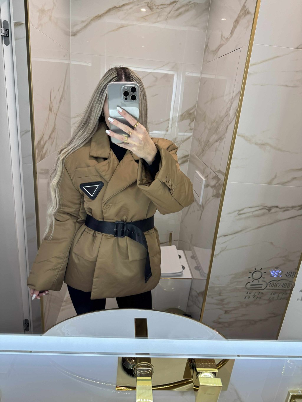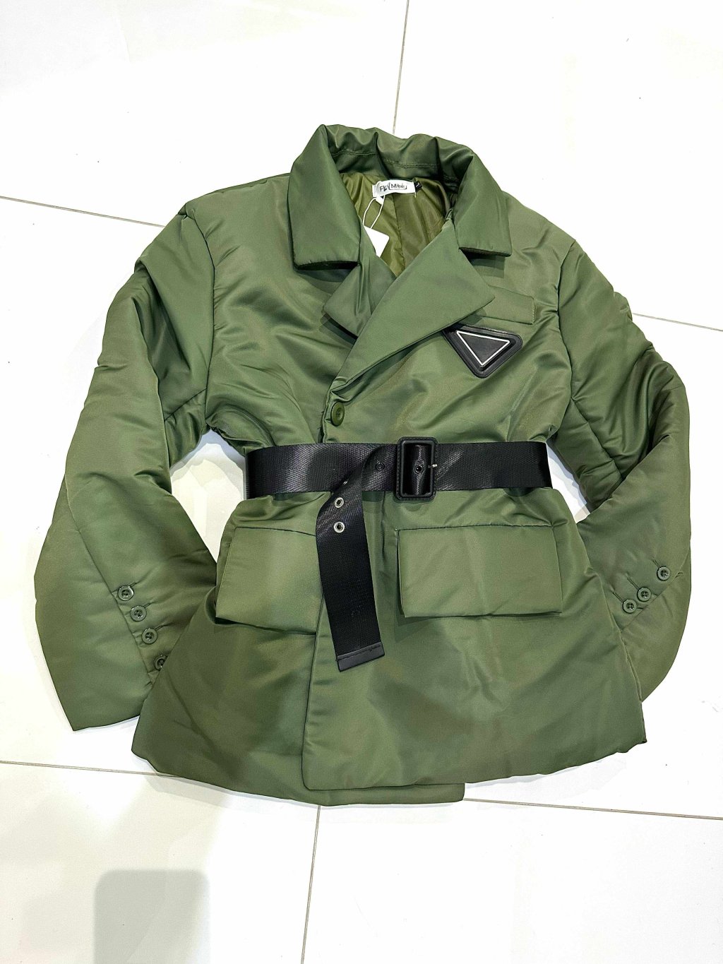 Oversize dámska zimná bunda s opaskom, zapínanie na gombíky + sa sťahuje v páse. Velkostne je širšia, napríklad velkosť M sedí na M/L.